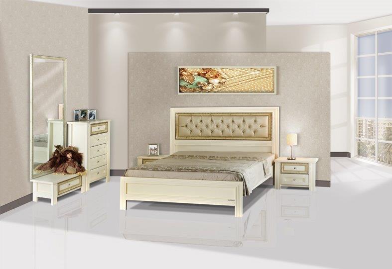 חדר שינה קומפלט מעוצב הכולל : מיטה זוגית 140/190 , 2 שידות , קומודה , ומראה .