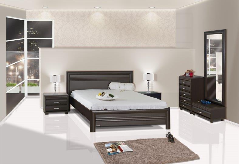 חדר שינה קומפלט מעוצב הכולל : מיטה זוגית 140/190 , 2 שידות , קומודה , ומראה .