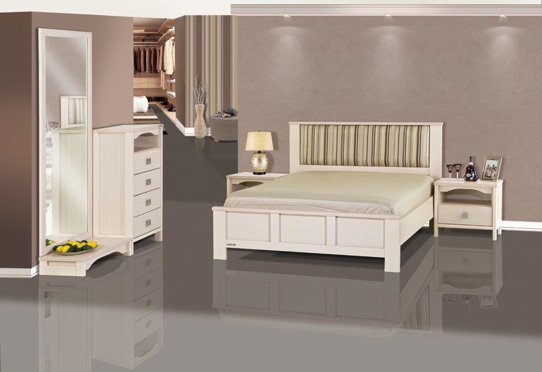 חדר שינה קומפלט מעוצב הכולל : מיטה זוגית 140/190 , 2 שידות , קומודה , ומראה .