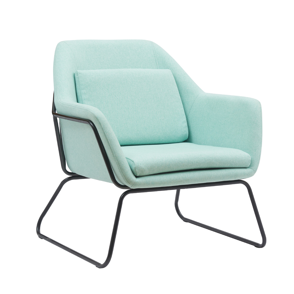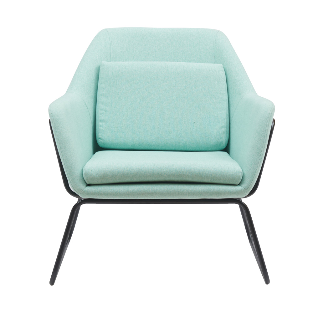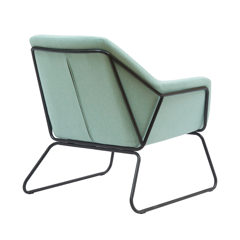 עיצוב מודרני עם מושב רחב, כרית ישיבה ורגלי ברזל מסוגננות.