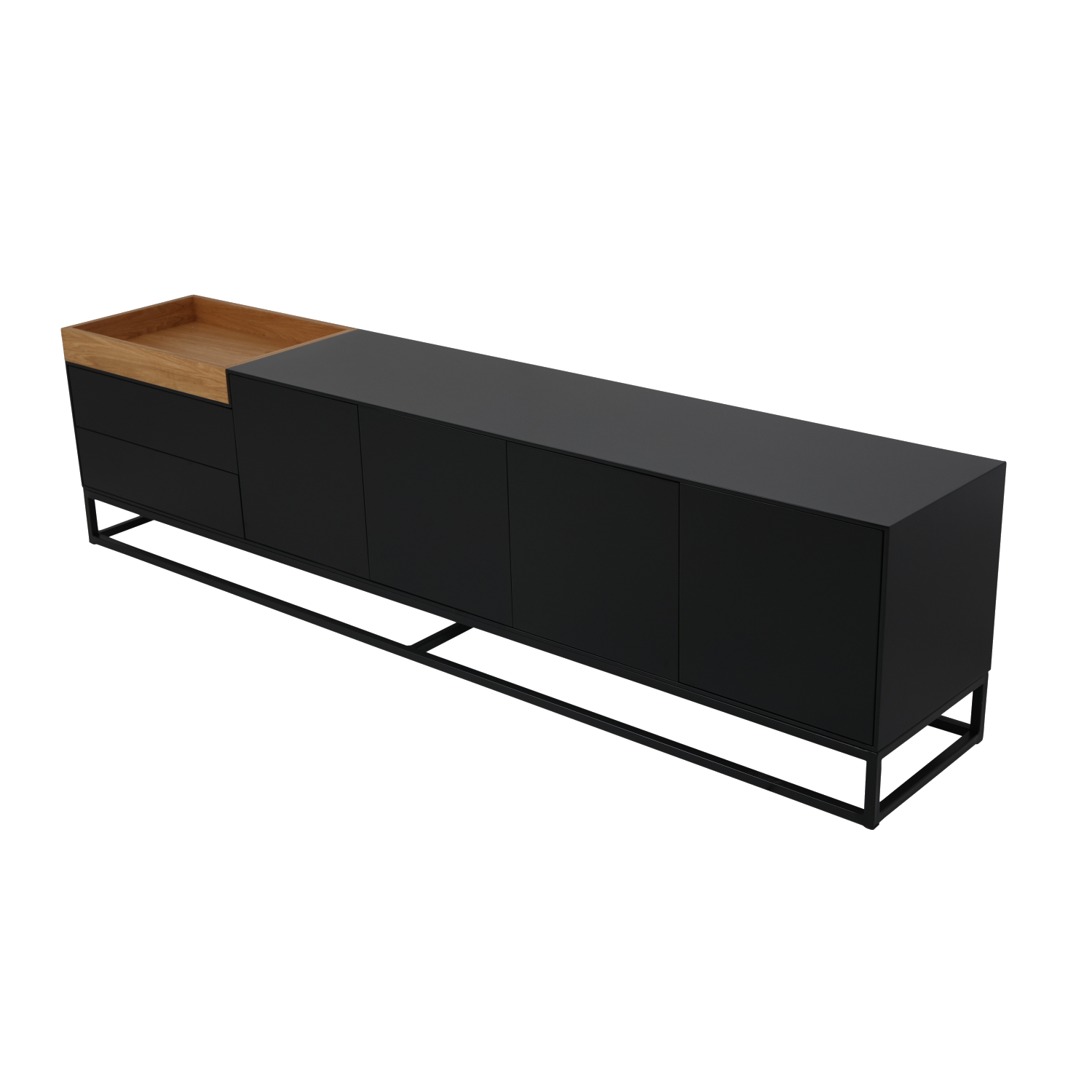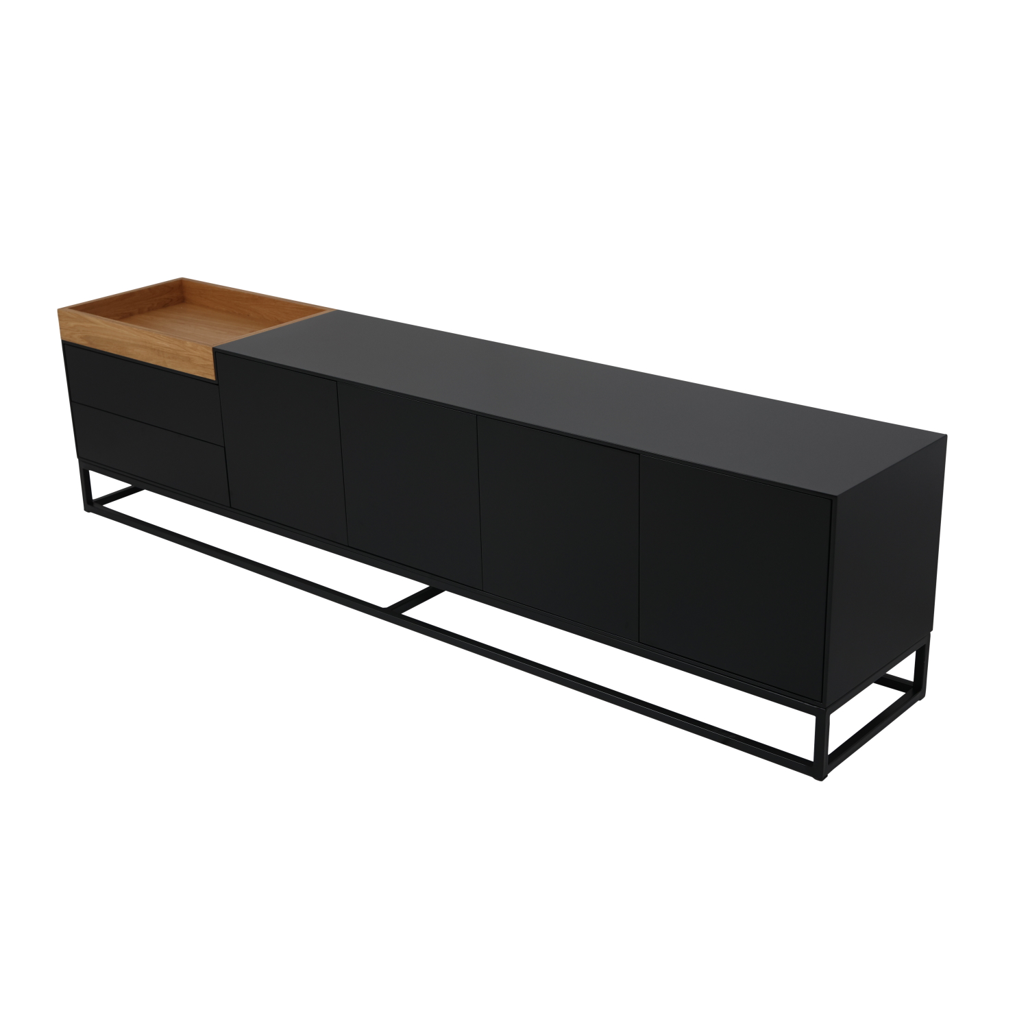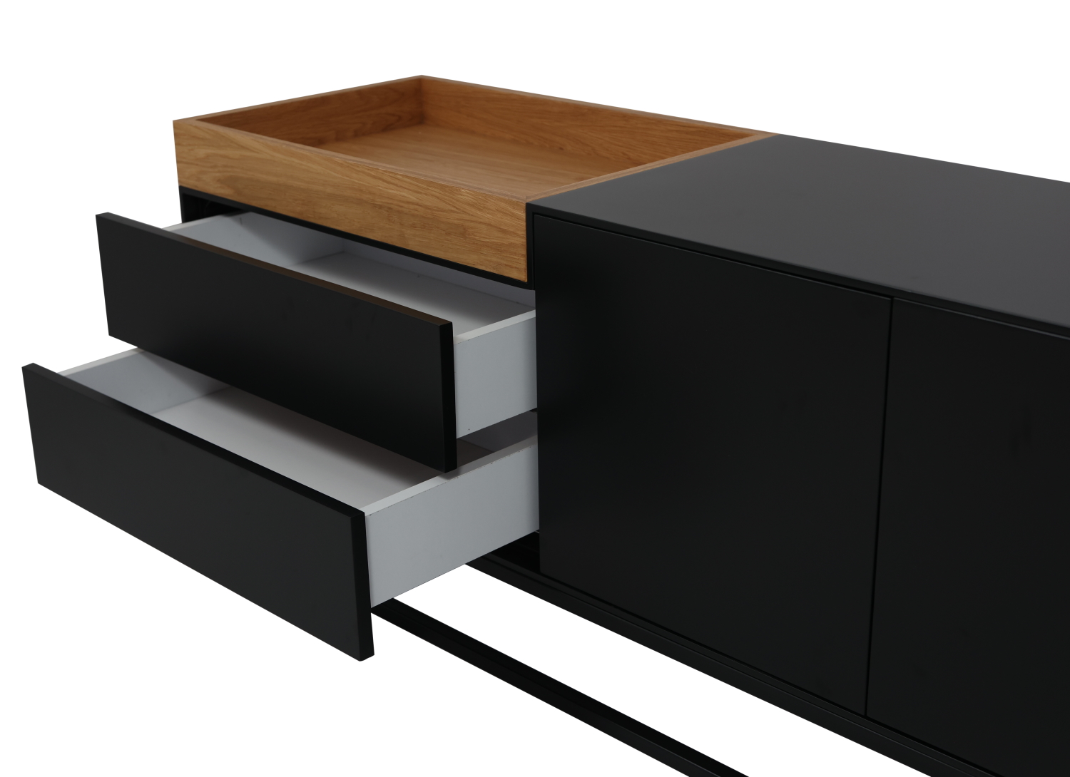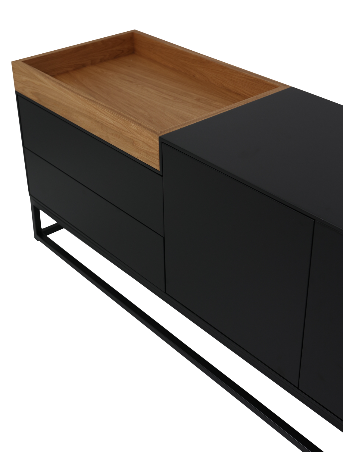 תיאור המוצר: מזנון מפלטה יצוקה צבועה בשחור בשילוב מגש בפורניר אלון ועץ מלא