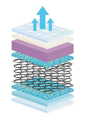 ריפוד – המזרן מרופד בבד סריג, אוורירי, איכותי ונעים למגע שעבר תהליך עיבוד אנטי בקטריאלי למניעת התפתחות רובד חיידקי במשטח השינה.