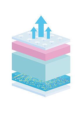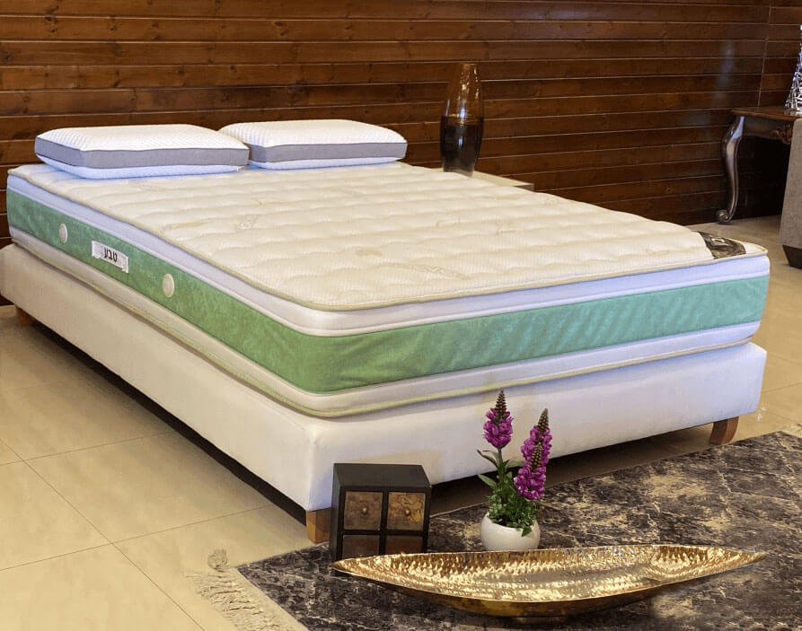 ריפוד – המזרן מרופד בבד סריג אוורירי בשילוב אלוורה, איכותי ונעים למגע שעבר תהליך עיבוד אנטי בקטריאלי למניעת התפתחות רובד חיידקי במשטח השינה.