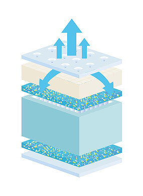 ריפוד – המזרן מרופד בבד סריג, אוורירי, איכותי ונעים למגע שעבר תהליך עיבוד אנטי בקטריאלי למניעת התפתחות רובד חיידקי במשטח השינה.