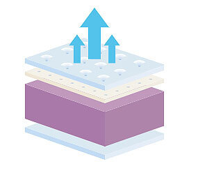ריפוד – המזרן מרופד בבד סריג אוורירי, איכותי ונעים למגע שעבר תהליך עיבוד אנטי בקטריאלי למניעת התפתחות רובד חיידקי במשטח השינה.