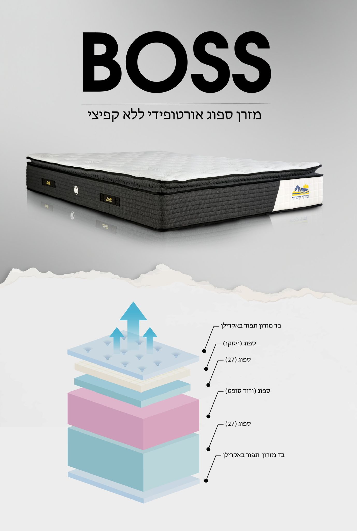 מזרון ויסקו עשיר, תפור בבד בעיצוב איטלקי, בעל יכולת התאמה מלאה לגוף,
