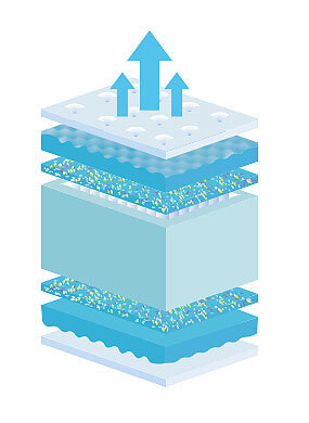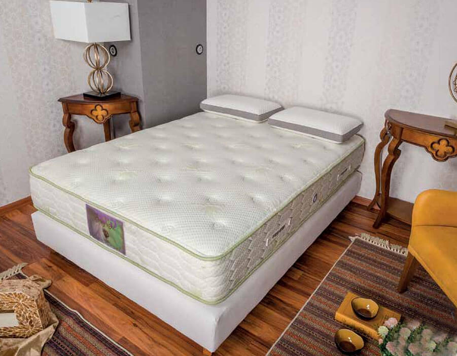 ריפוד – המזרן מרופד בבד סריג בשילוב אלוורה, אוורירי, איכותי ונעים למגע שעבר תהליך עיבוד אנטי בקטריאלי למניעת התפתחות רובד חיידקי במשטח השינה.