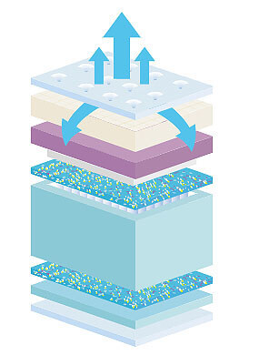 ליבת המזרן מורכבת מקפיצים מבודדים עם מפולימר בצפיפות גבוהה בשילוב שכבת ויסקו לפיזור לחצים, המבטיח למזרן מבנה אנטומי מושלם ועמיד לאורך שנים.