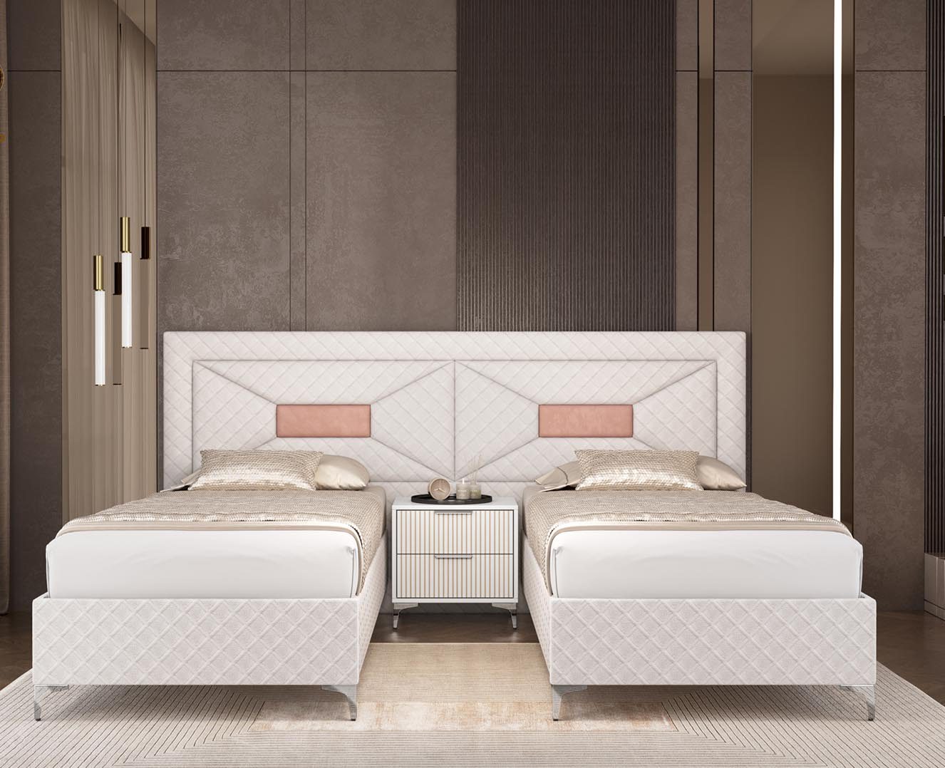 או שתי מיטות יחיד תחת ראש מיטה שלם. בסיס מיטה עשוי מחומרים איכותיים
