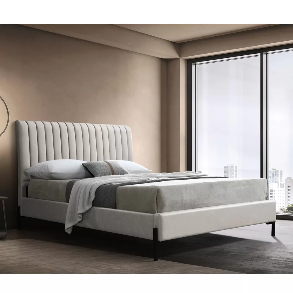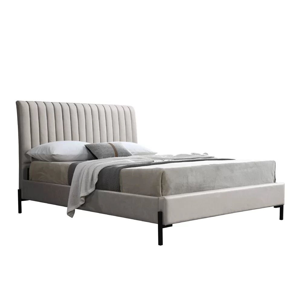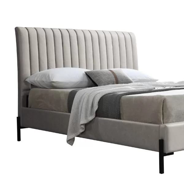 מיטה זוגית מרופדת עם בסיס עץ מלא בעיצוב מודרני