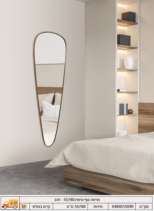 מראה גוף טיפה עם מסגרת בצבע זהב שתשדרג לכם את הבית.