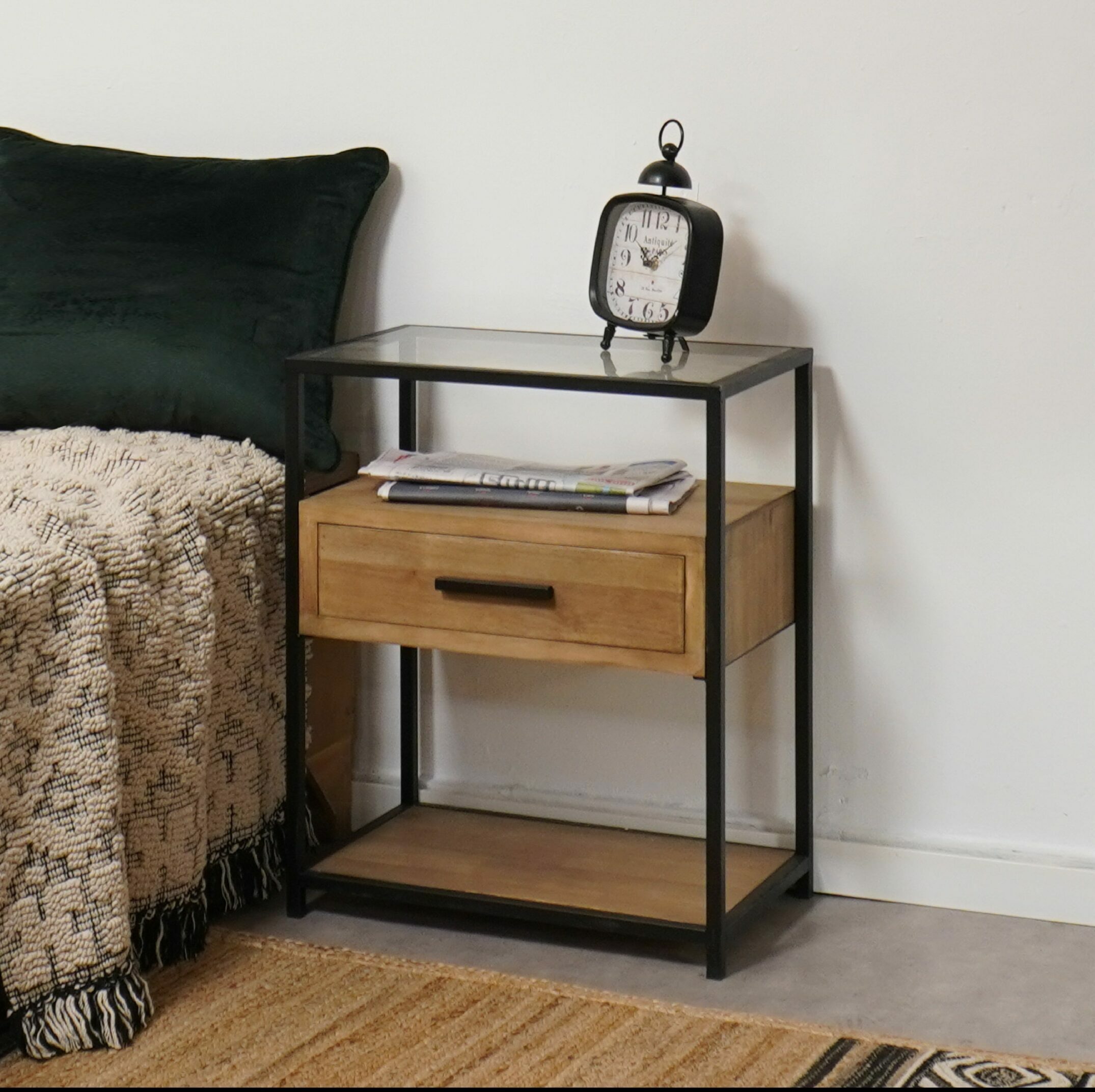 שידת מגירה עם מגירות בצבע חום ומסגרת שחורה