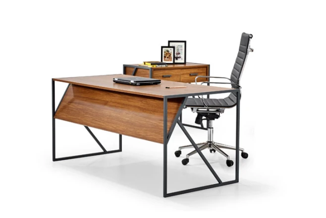 סט שולחן משרדי מגי + ארונית צדדית חום טבעי רוחב 180 ס"מ