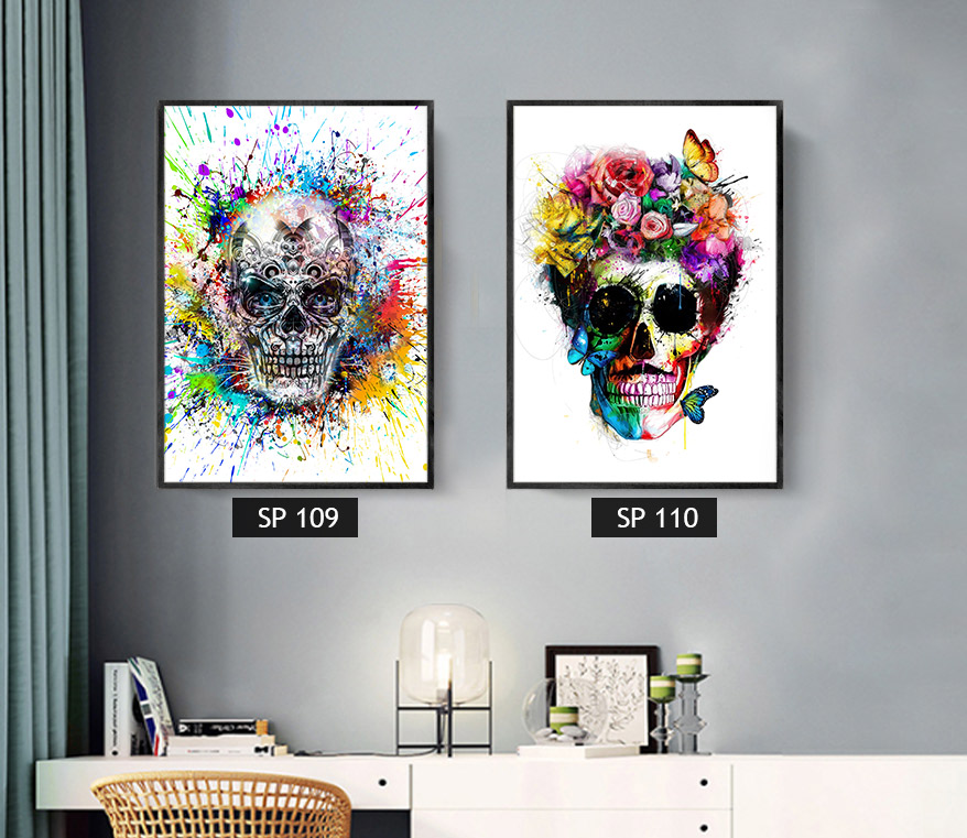 סט 2 תמונות קנבס גולגולת עם משלל צבעים