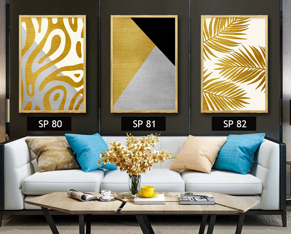 סט 3 תמונות צורות בצבעים שחור, אפור, לבן, זהב