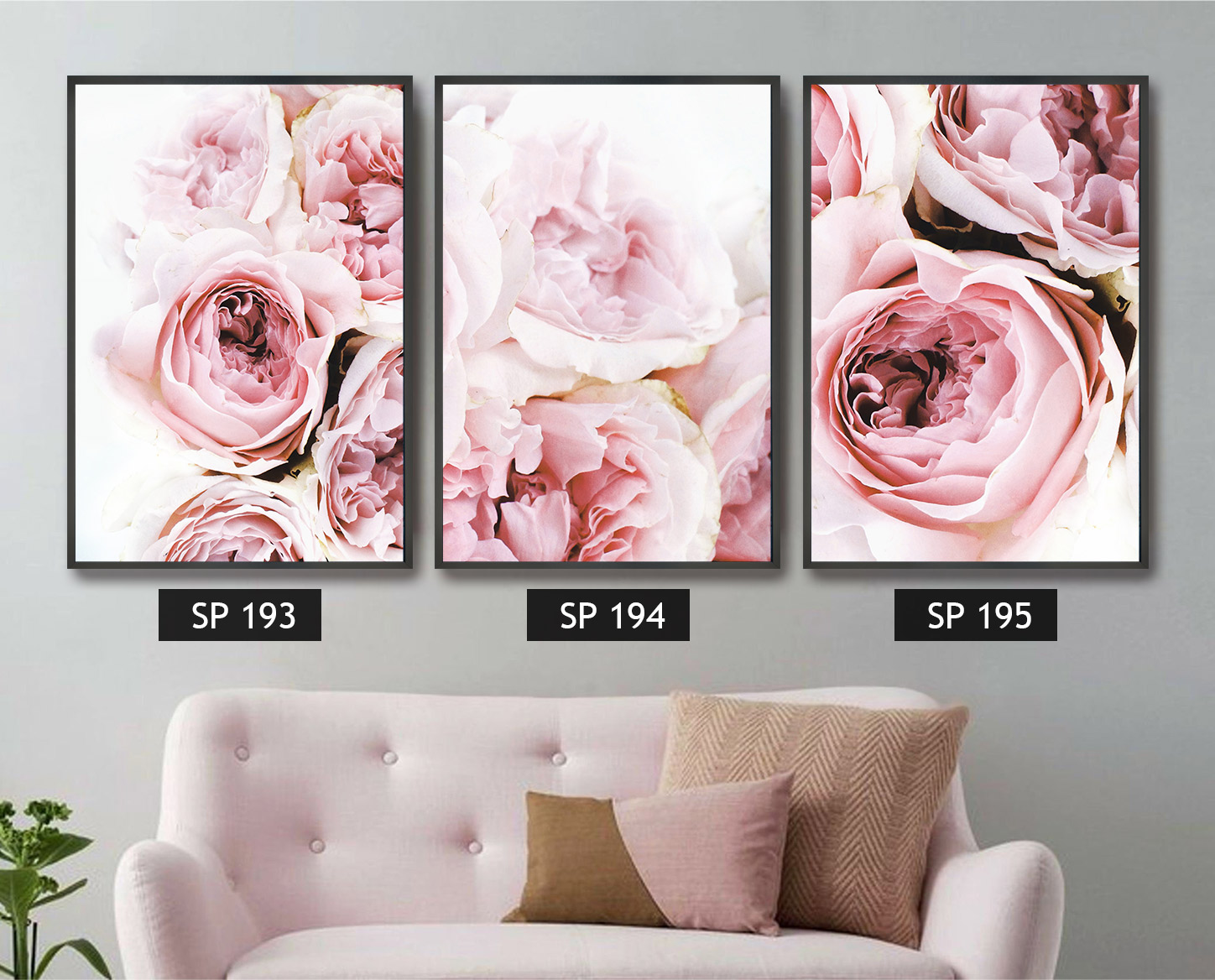 סט 3 תמונות קנבס פרחים ורודים