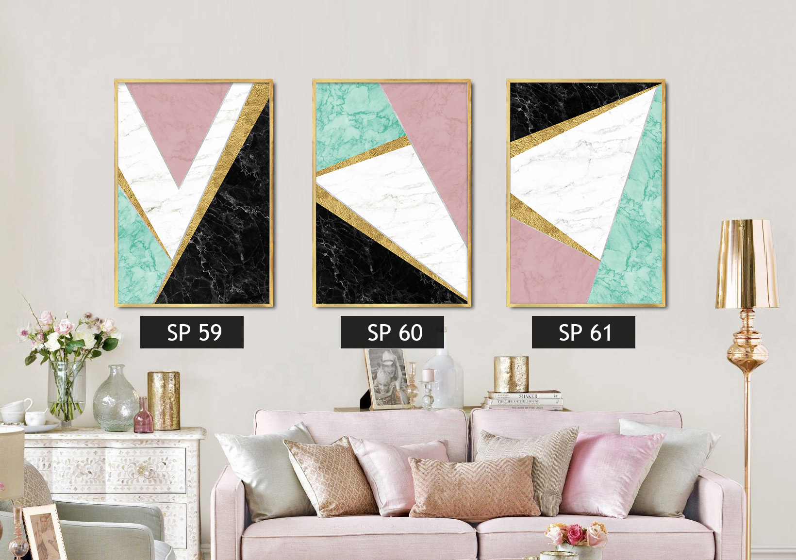 סט 3 תמונות קנבס של צורות בצבעים טורקיז, לבן, שחור, ורוד