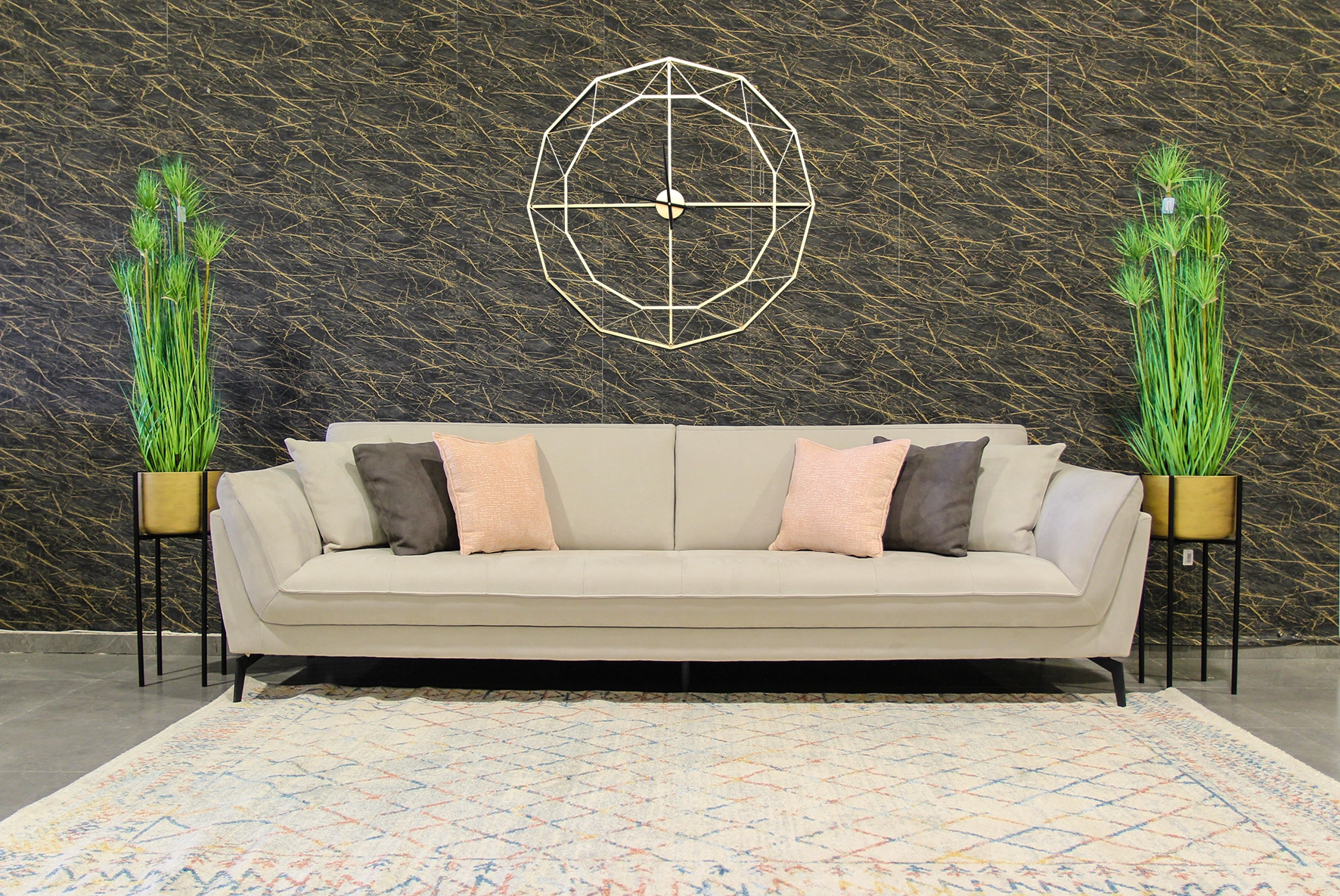 הספה מגיעה עם רגליות מתכת שחורה אכותיות עם תחתית אנטי סקר’צ למניעת שריטות בריצפה.