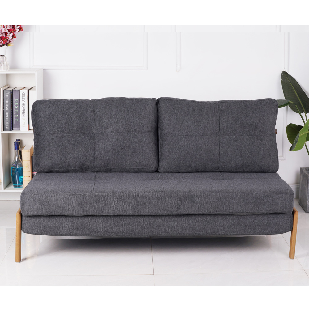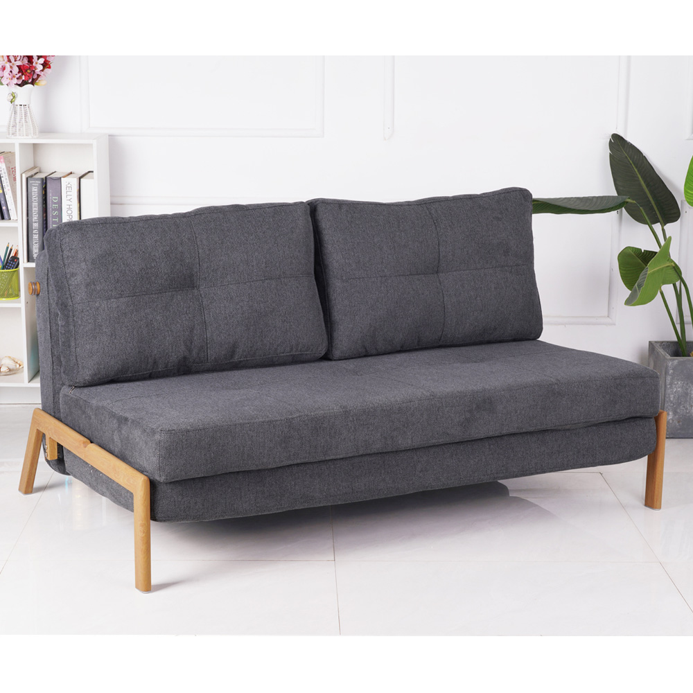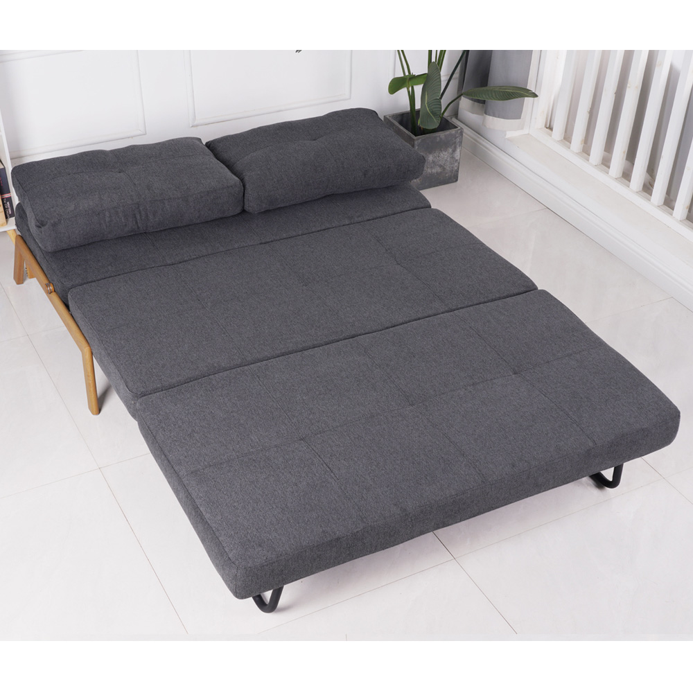 ספה מעוצבת מרופדת בד רחיץ ונפתחת למיטה זוגית דגם דריה-אפור כהה