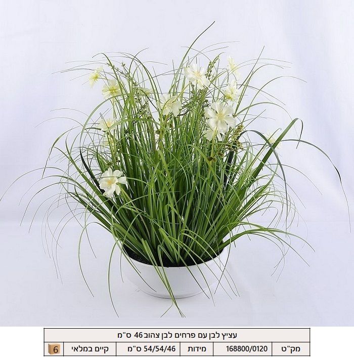עציץ לבן עם פרחים לבן צהוב