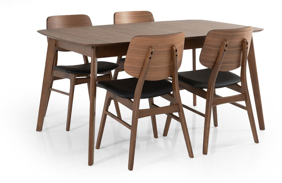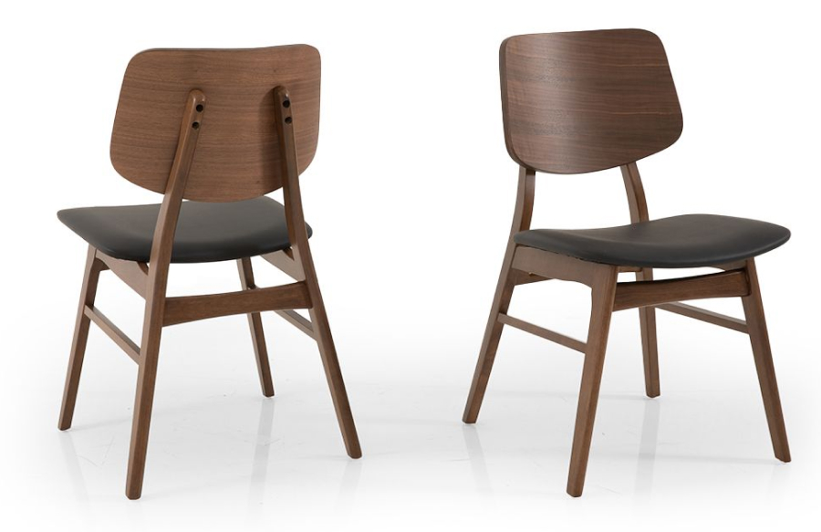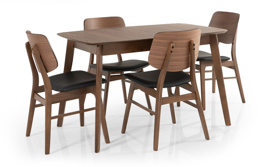 4 כיסאות אוכל – גוון אגוז טבעי | מושב בדמוי עור שחור