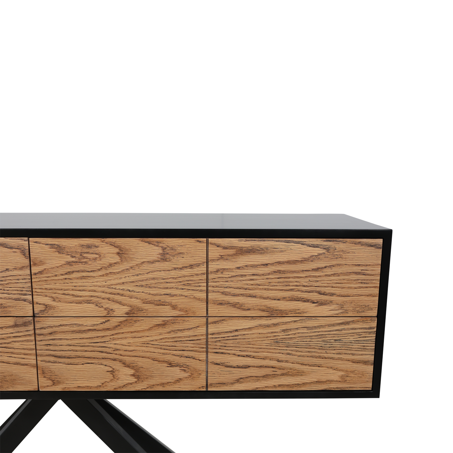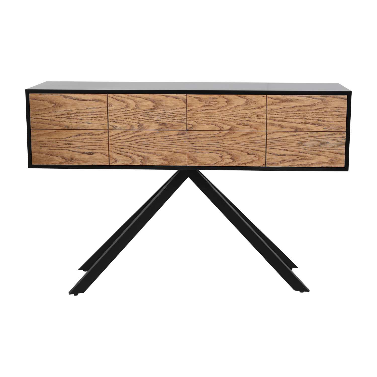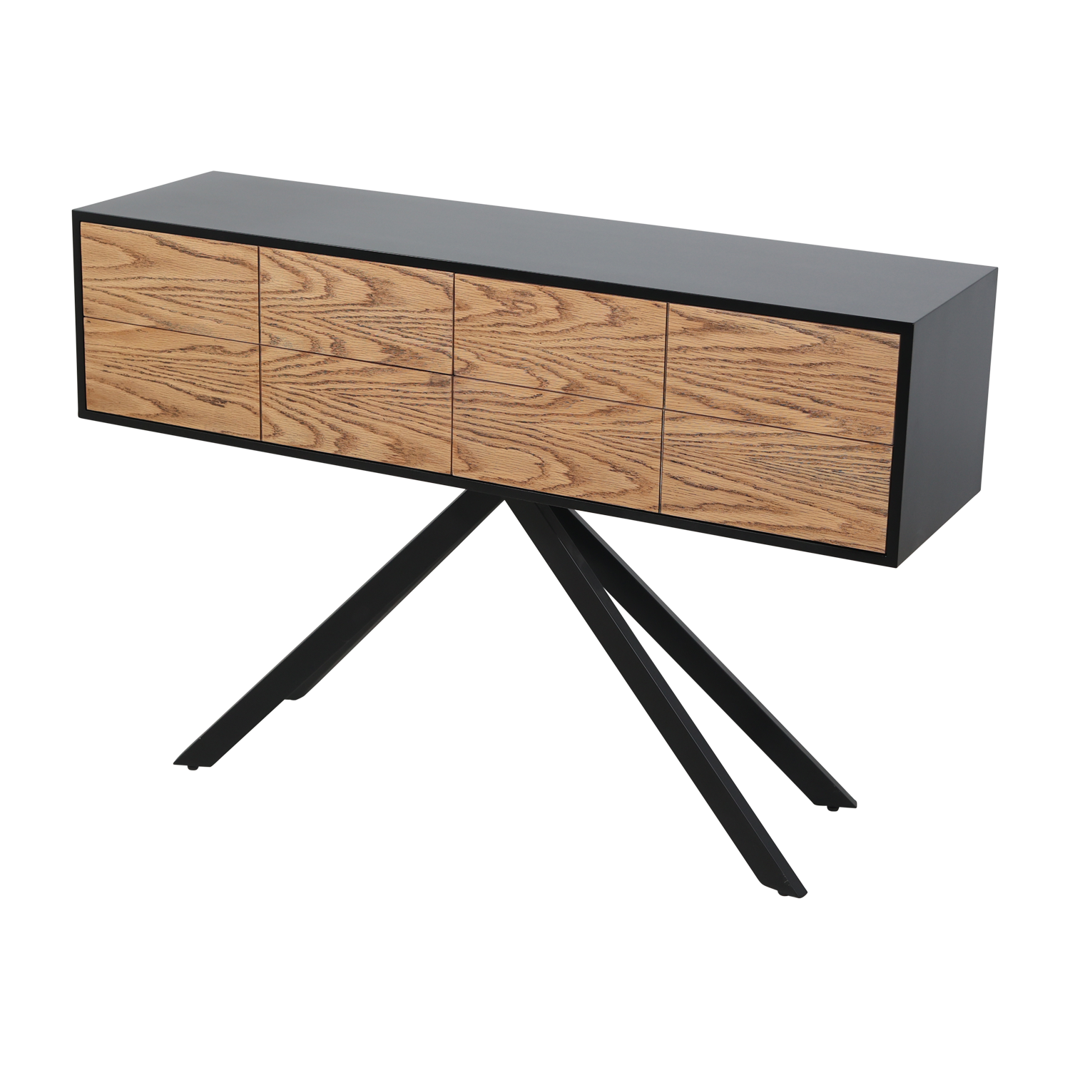 תיאור מוצר: קונסולה מפלטה יצוקה צבועה בשחור בשילוב פורניר אלון מושחר רגל מתכת שחורה