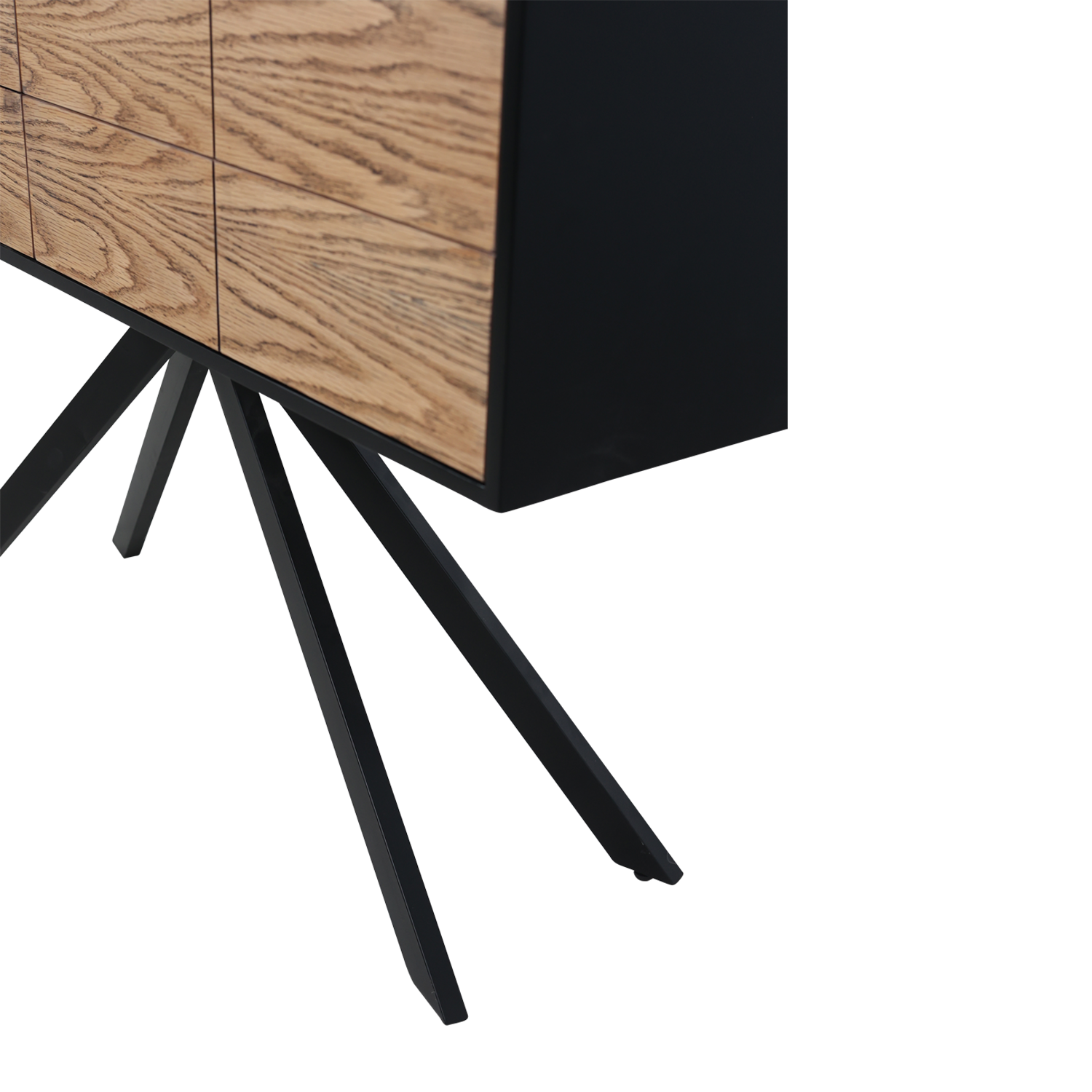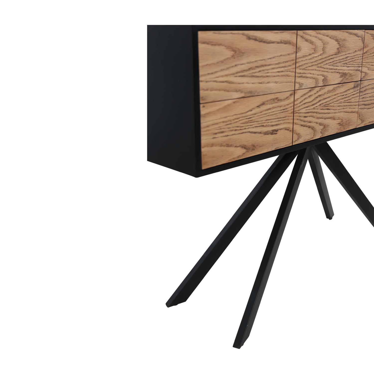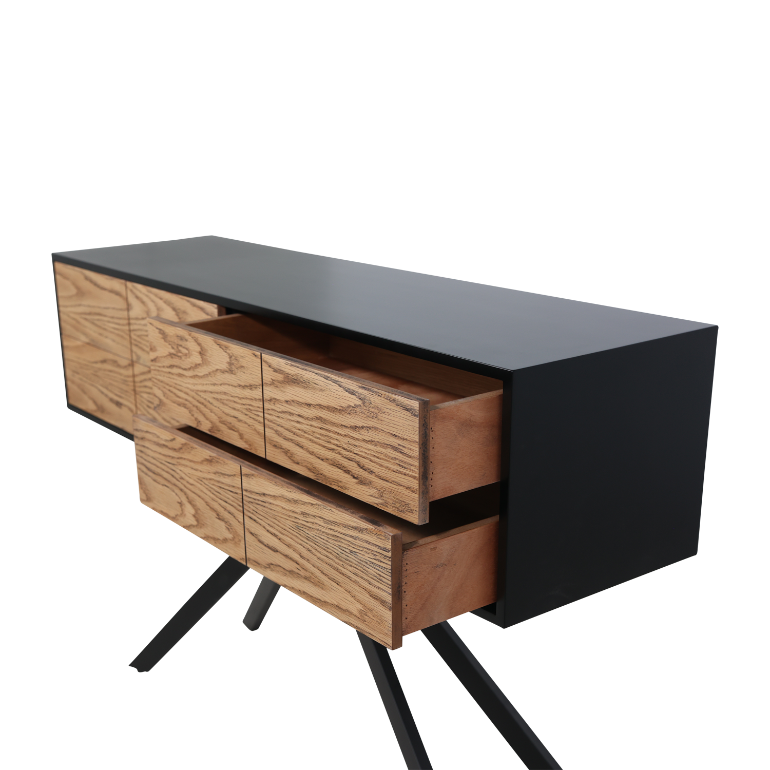 תיאור מוצר: קונסולה מפלטה יצוקה צבועה בשחור בשילוב פורניר אלון מושחר רגל מתכת שחורה