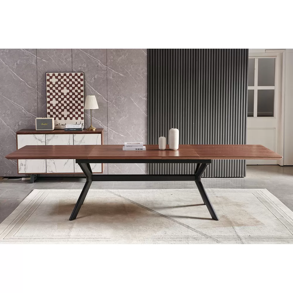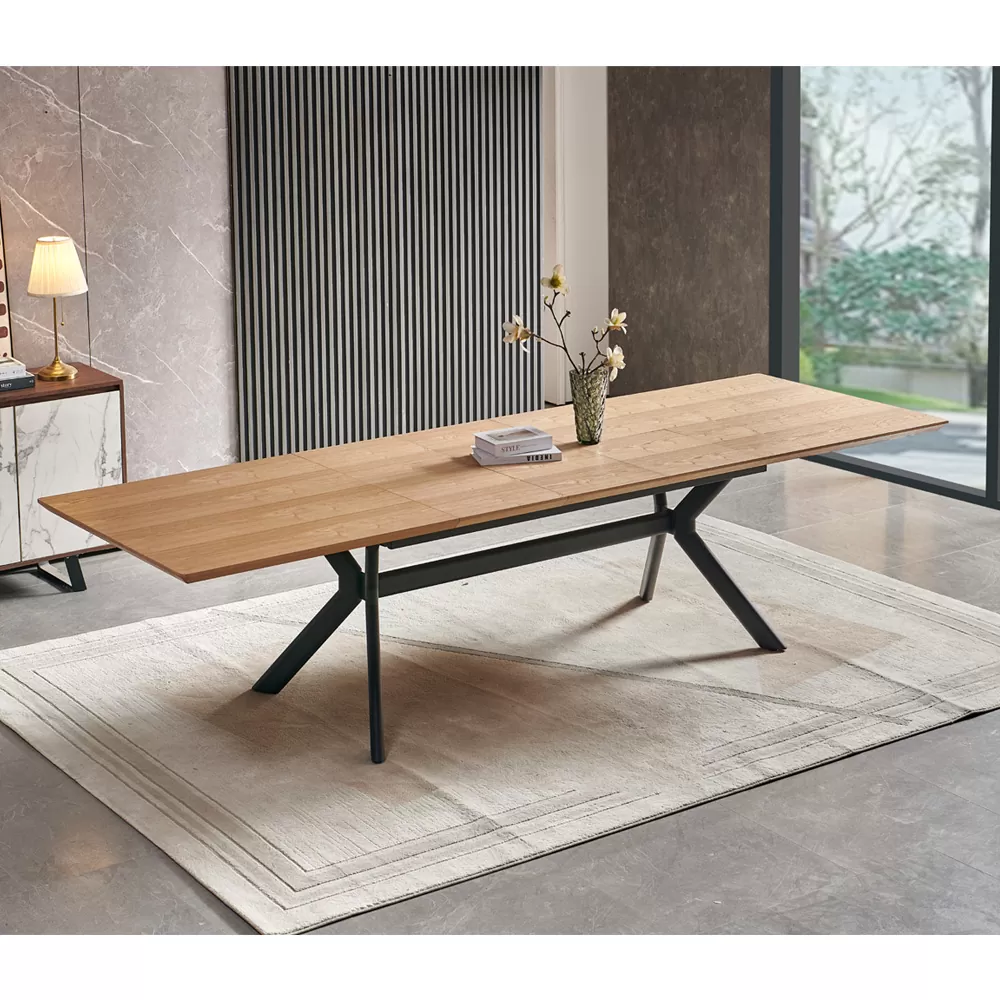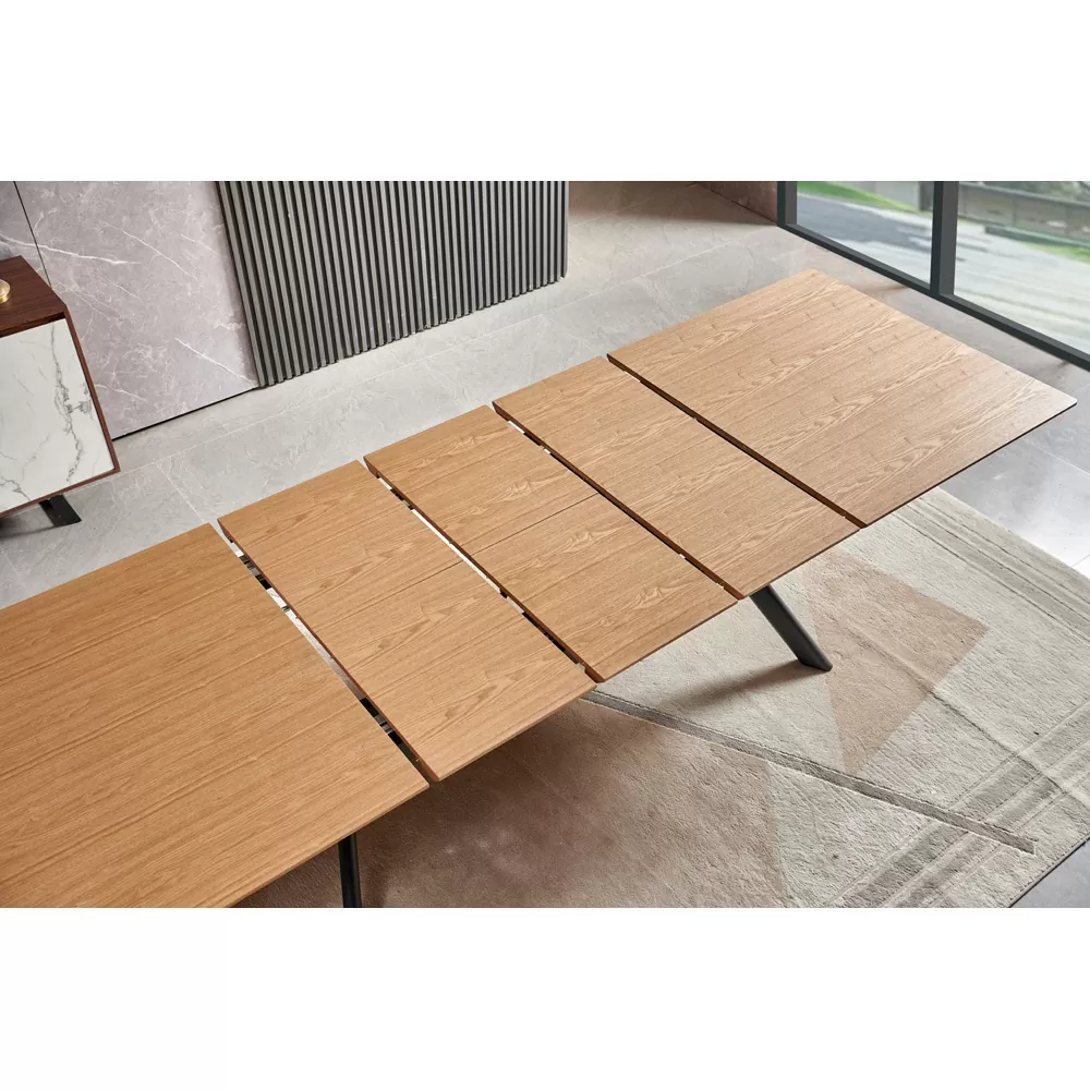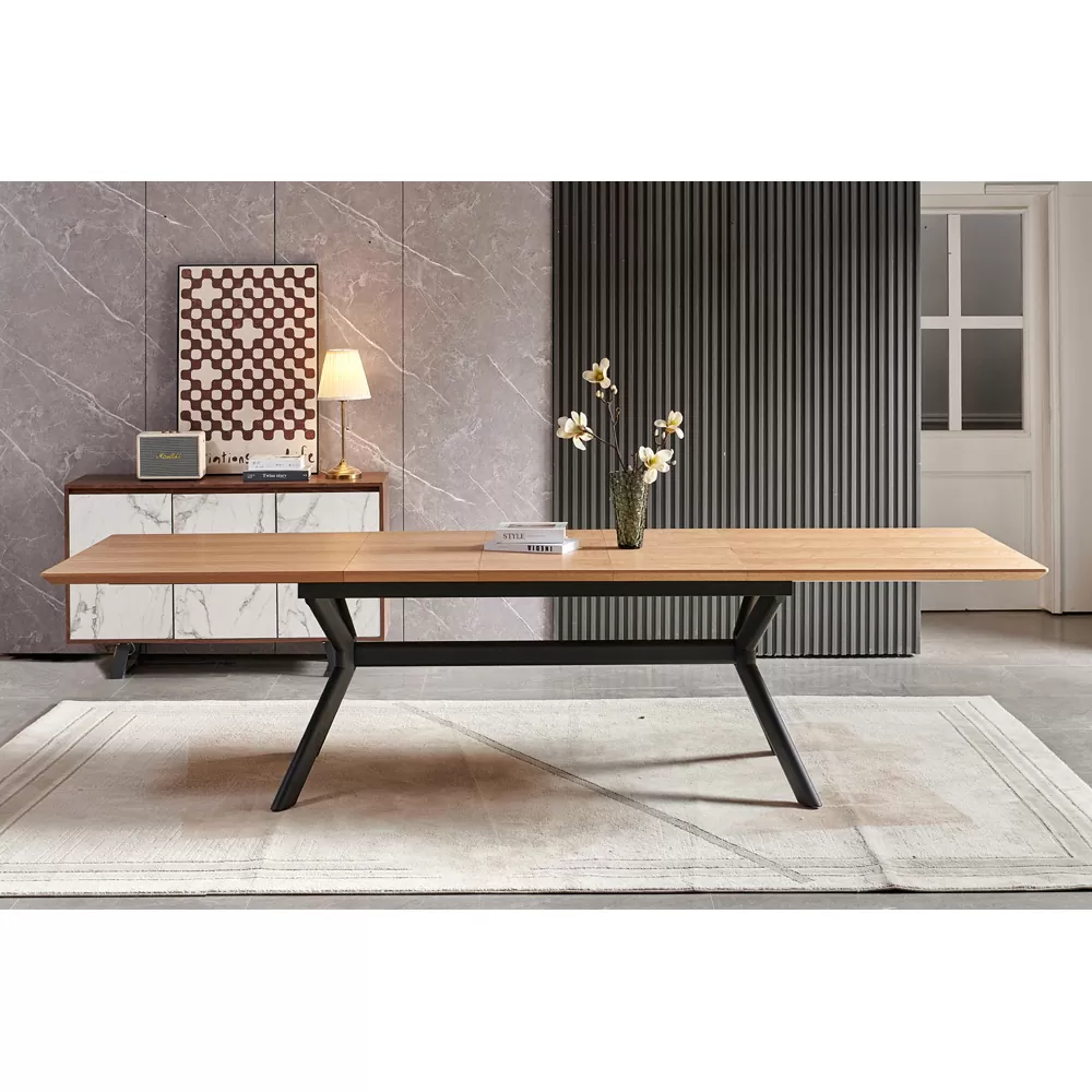 שולחן אוכל נפתח 1.8-3.0 מ’ עם הארכות 3 פרפר ורגלי ברזל דגם מריו-אלון מושחר/אלון טבעי/אגוז