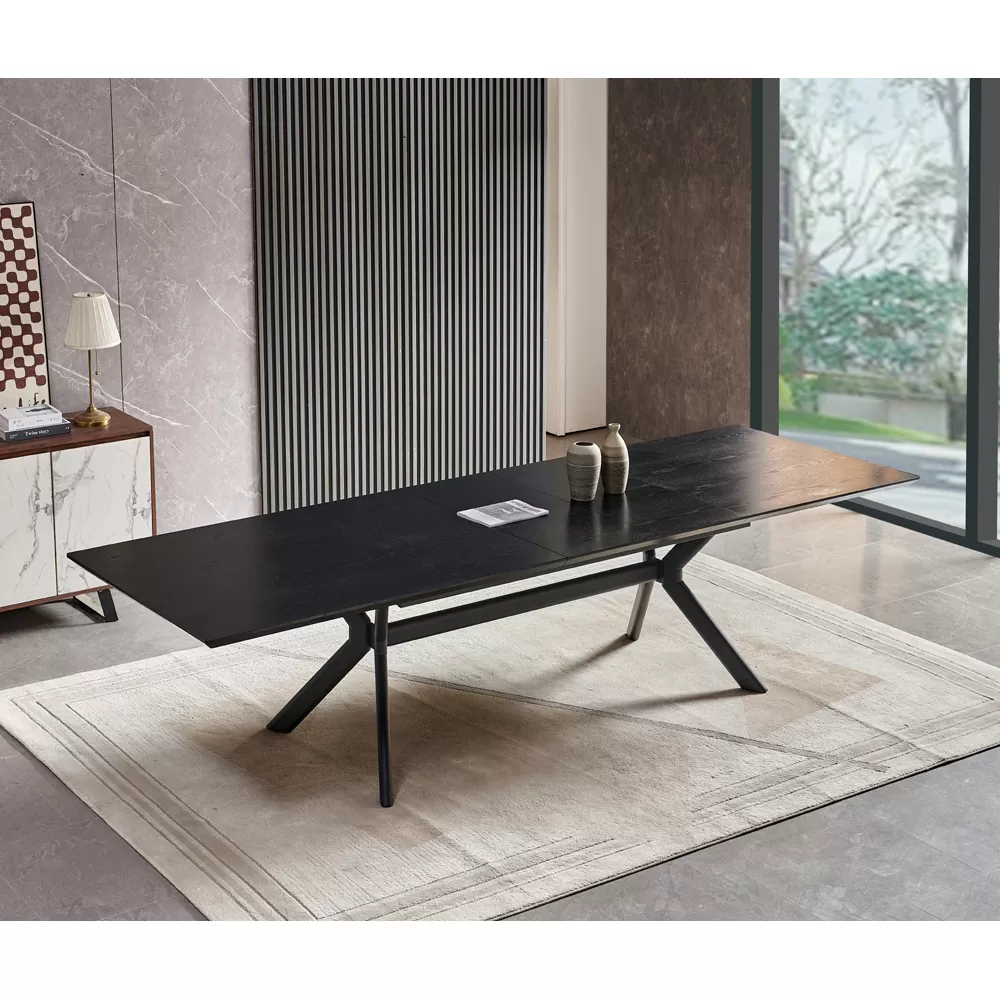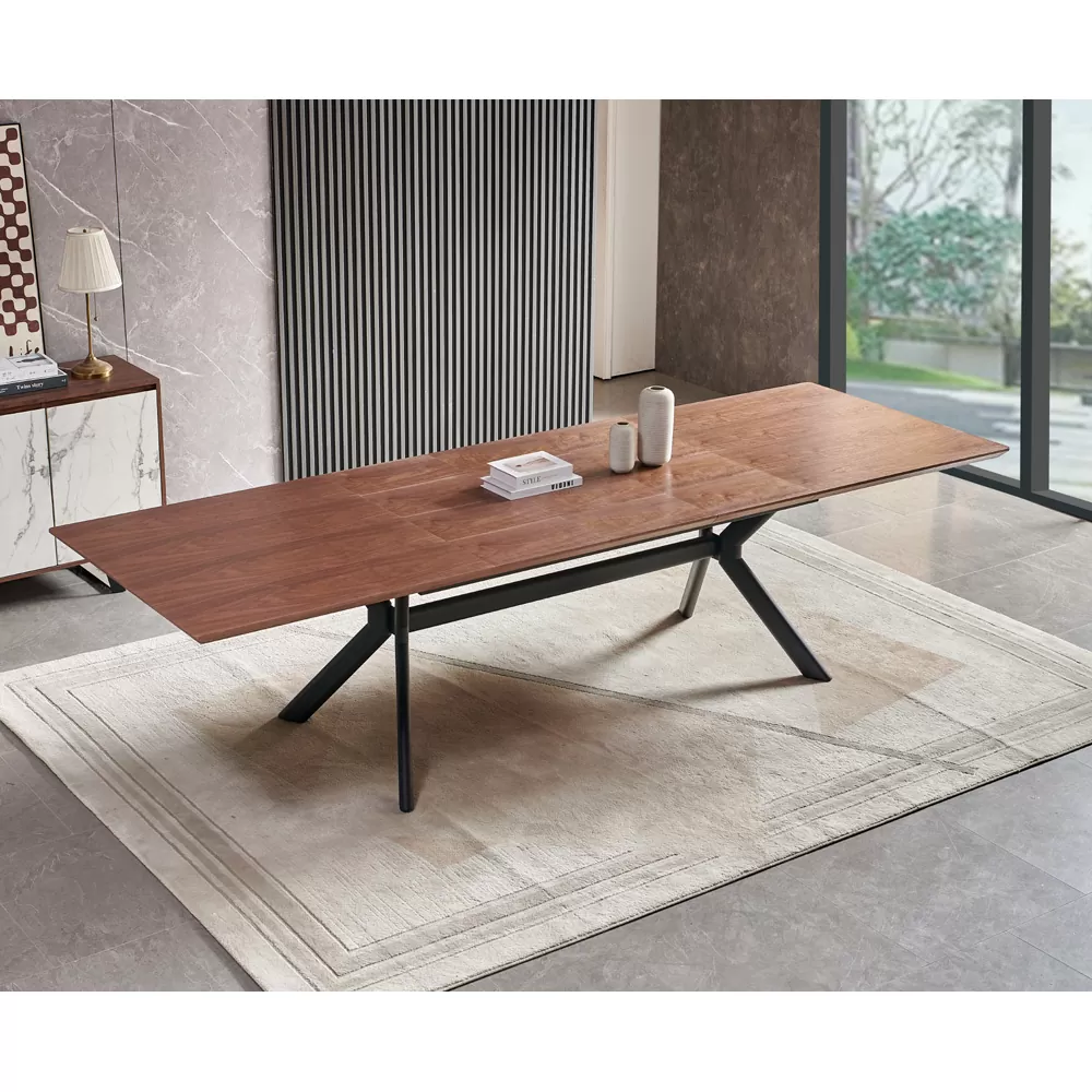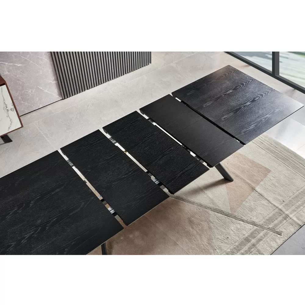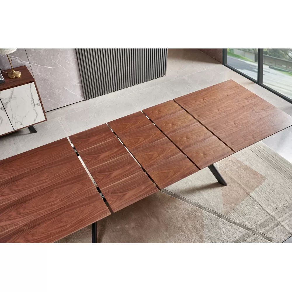 שולחן אוכל נפתח 1.8-3.0 מ’ עם הארכות 3 פרפר ורגלי ברזל דגם מריו-אלון מושחר/אלון טבעי/אגוז