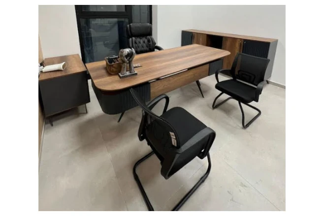 שולחן מנהל יוקרתי 220 ס"מ שמיר צבע עץ כהה