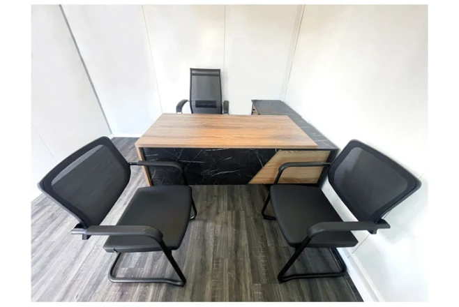 שולחן מלמין עם שלוחה המכילה 2 מגירות צמודות