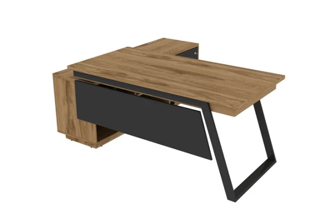שולחן עבודה דגם פליקס כולל הרחבה 160 ס"מ צבע עץ כהה סינר שחור