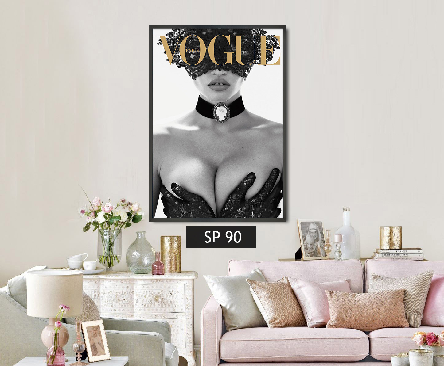 תמונת קנבס אישה בשחור לבן עם כיתוב בצבע זהב SP 90