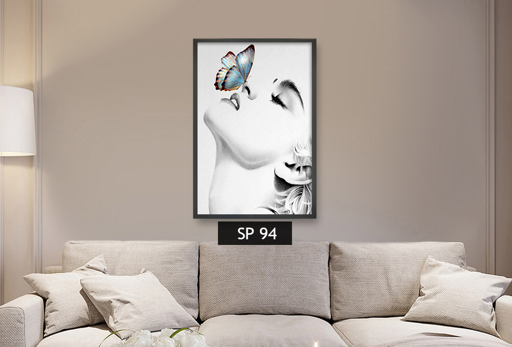 תמונת קנבס אישה בשחור לבן עם פרפר תכלת
