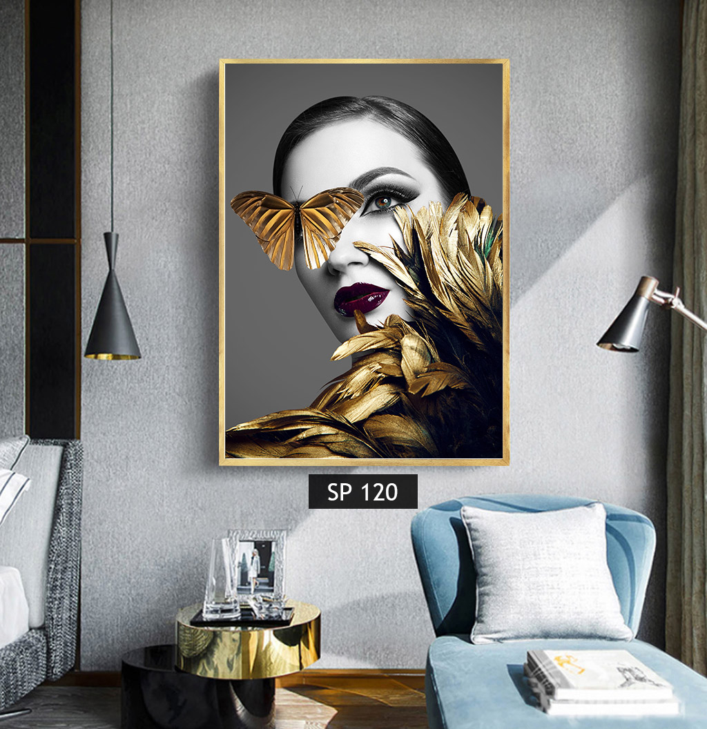 תמונת קנבס אישה עם עלים ופרפר מזהב SP 120