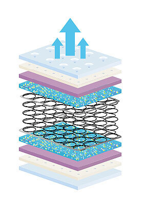 ריפוד – המזרן מרופד בבד סריג אוורירי בשילוב אלוורה, איכותי ונעים למגע שעבר תהליך עיבוד אנטי בקטריאלי למניעת התפתחות רובד חיידקי במשטח השינה.