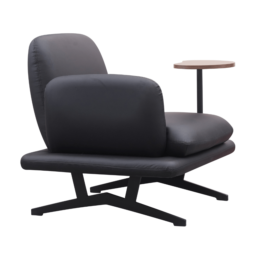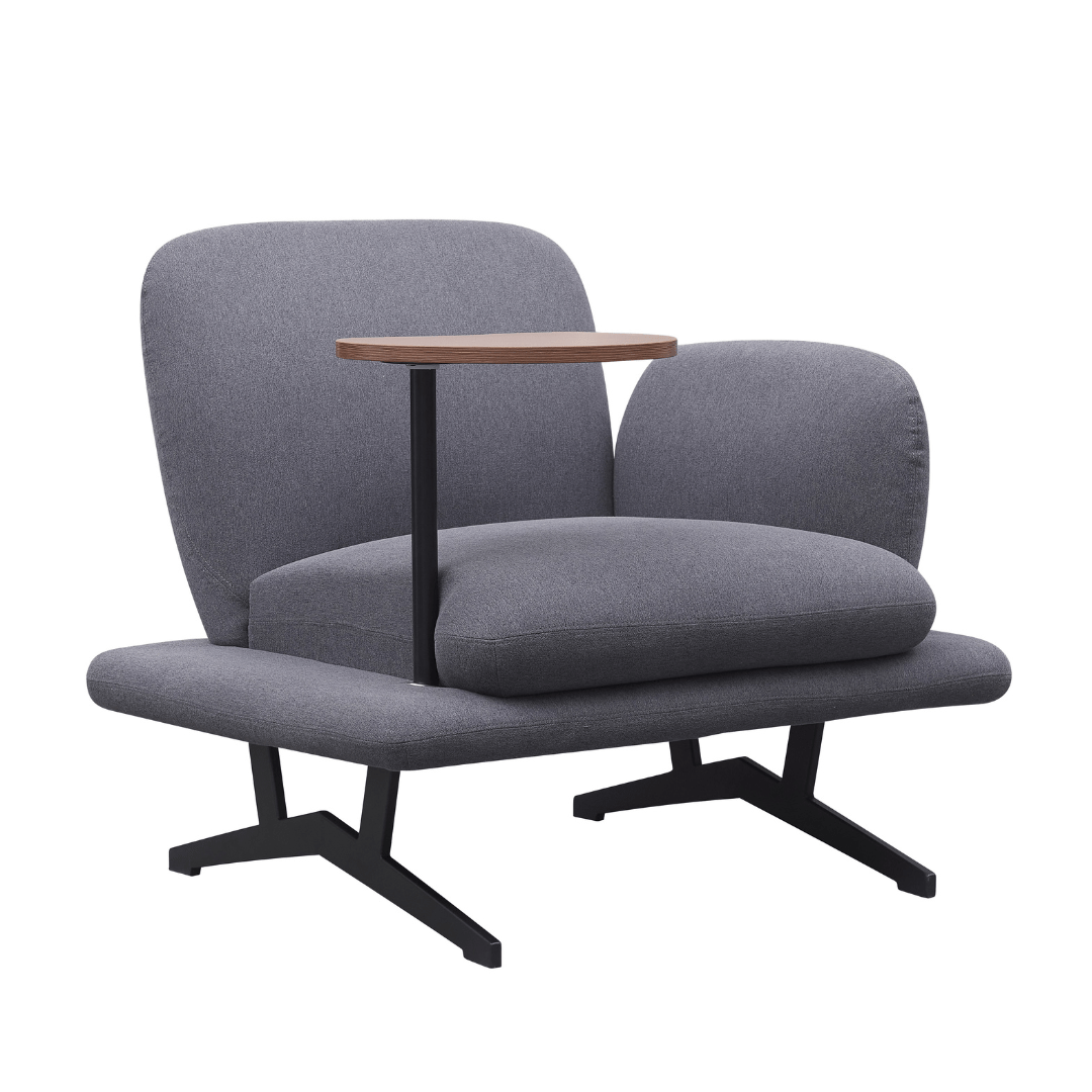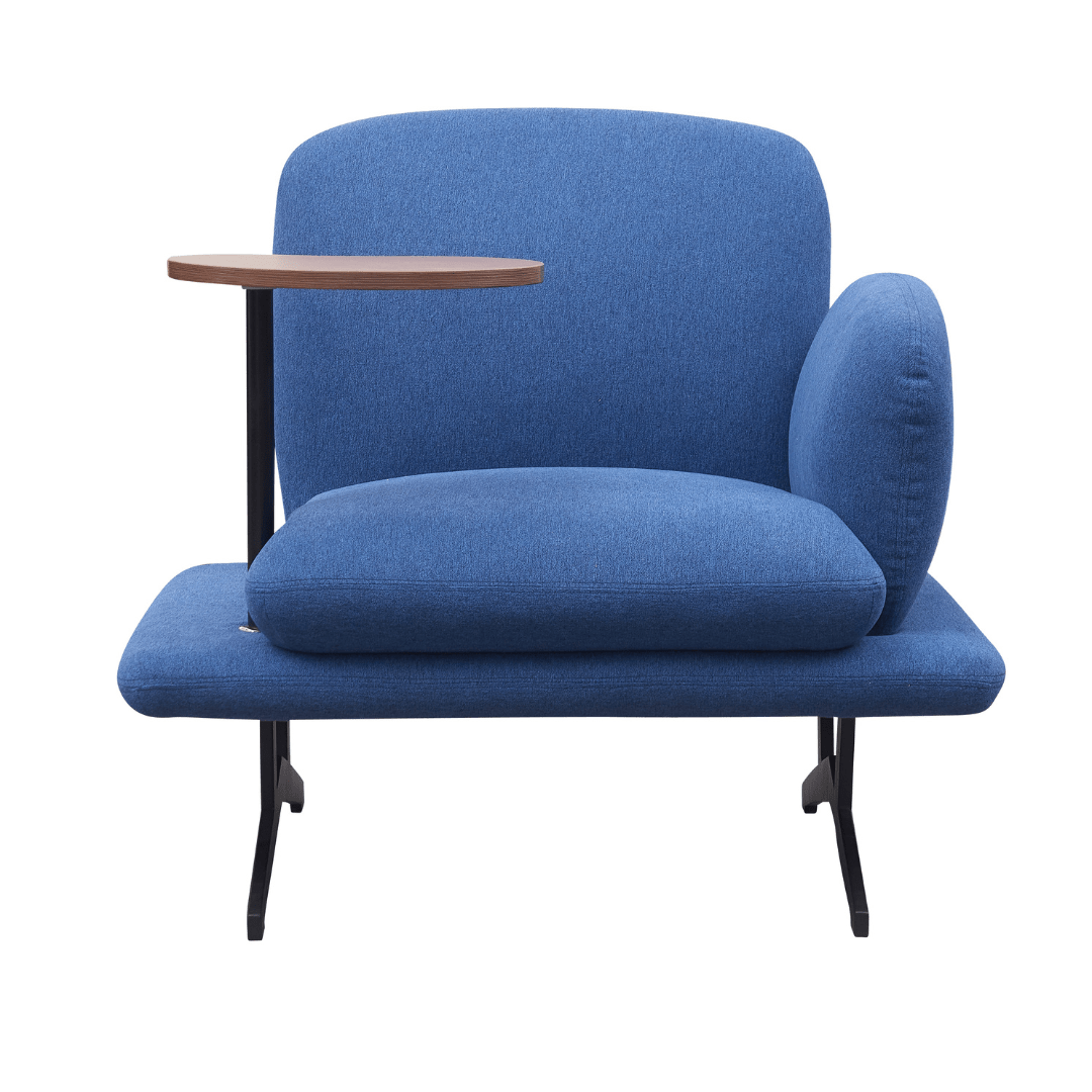 כורסת אירוח והמתנה מעוצבת בשילוב מדף עץ
